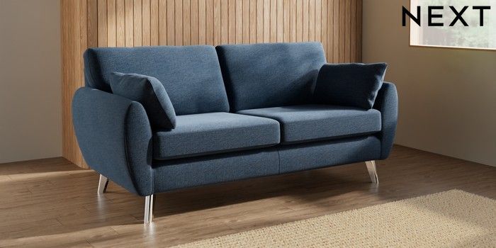 7.3.1 Buy Wilson 3 Seater Small Sofa Ripple Chenille Dark Blue Metal Tapered - Chrome from the Seasons online shop Click here to use our website with more accessibility support, for example screen readers