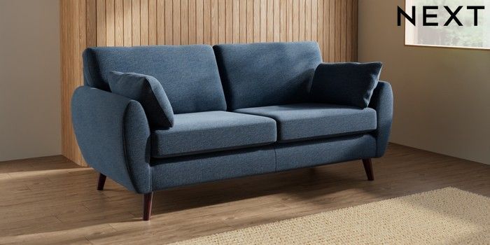 7.3.1 Buy Wilson 3 Seater Small Sofa Ripple Chenille Dark Blue Retro Tapered - Dark Brown from the Seasons online shop Click here to use our website with more accessibility support, for example screen readers