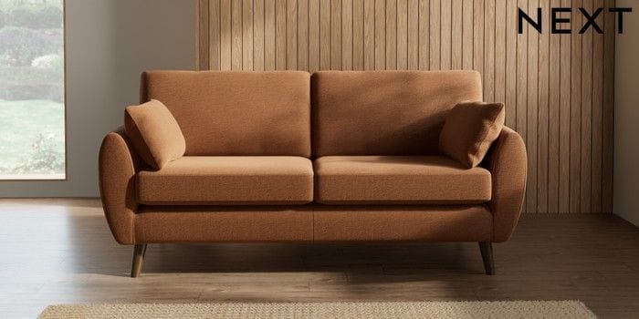 7.2.10 Buy Wilson 3 Seater Small Sofa Ripple Chenille Mid Rust Brown Retro Tapered - Mid from the Seasons online shop Click here to use our website with more accessibility support, for example screen readers
