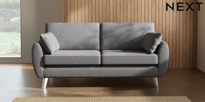 7.2.10 Buy Wilson 3 Seater Small Sofa Studio Chenille Mid Grey Metal Tapered - Chrome from the Seasons online shop Click here to use our website with more accessibility support, for example screen readers