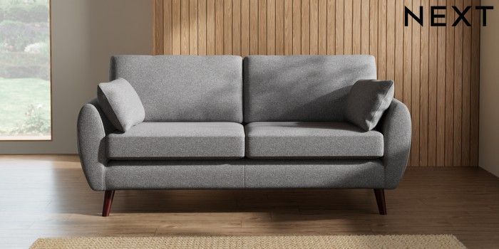 7.2.10 Buy Wilson 3 Seater Small Sofa Studio Chenille Mid Grey Retro Tapered - Dark Brown from the Seasons online shop Click here to use our website with more accessibility support, for example screen readers