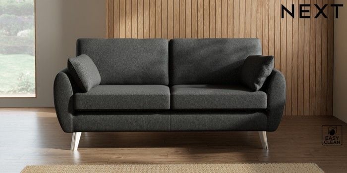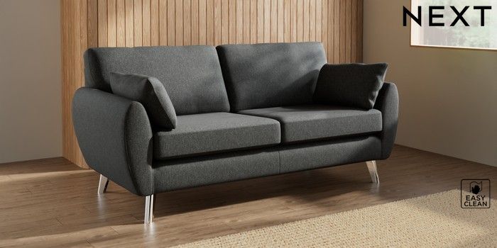 7.3.1 Buy Wilson 3 Seater Small Sofa Tweedy Blend Easy Clean Charcoal Grey Metal Tapered - Chrome from the Seasons online shop Click here to use our website with more accessibility support, for example screen readers