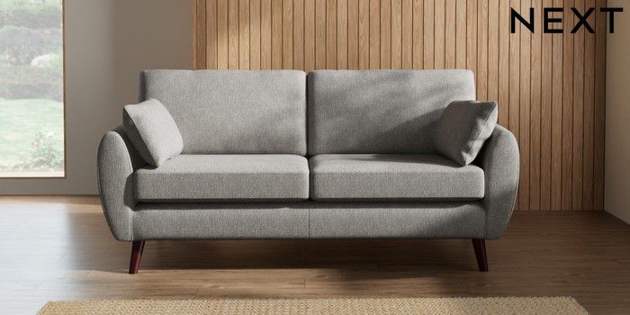 7.3.1 Buy Wilson 3 Seater Small Sofa Tweedy Chenille Mid Grey Retro Tapered - Dark Brown from the Seasons online shop Click here to use our website with more accessibility support, for example screen readers