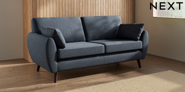 7.3.1 Buy Wilson 3 Seater Small Sofa Tweedy Chenille Navy Blue Retro Tapered - Dark Brown from the Seasons online shop Click here to use our website with more accessibility support, for example screen readers