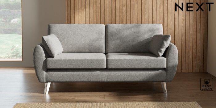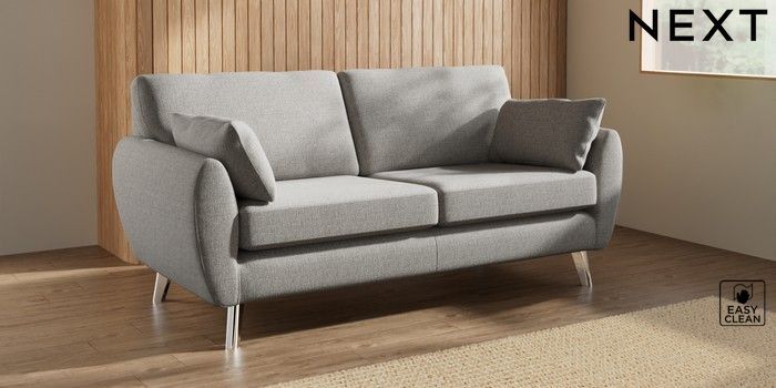 7.3.1 Buy Wilson 3 Seater Small Sofa Woven Chenille Easy Clean Light Grey Metal Tapered - Chrome from the Seasons online shop Click here to use our website with more accessibility support, for example screen readers
