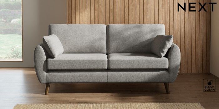 7.3.1 Buy Wilson 3 Seater Small Sofa Woven Chenille Easy Clean Light Grey Retro Tapered - Mid from the Seasons online shop Click here to use our website with more accessibility support, for example screen readers