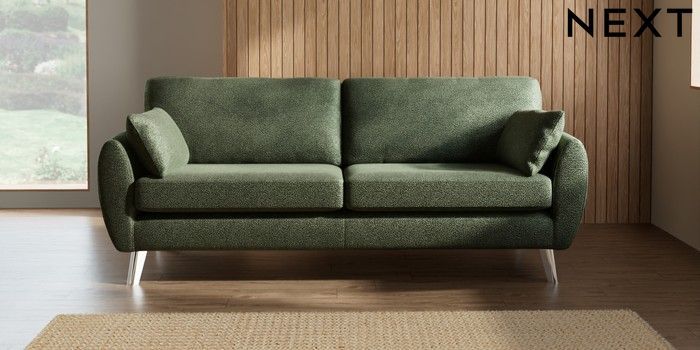 7.3.1 Buy Wilson 3 Seater Sofa Boucle Chenille Dark Moss Green Metal Tapered - Chrome from the Seasons online shop Click here to use our website with more accessibility support, for example screen readers