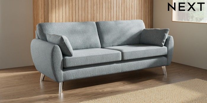 7.3.1 Buy Wilson 3 Seater Sofa Chunky Weave Mid Blue Metal Tapered - Chrome from the Seasons online shop Click here to use our website with more accessibility support, for example screen readers