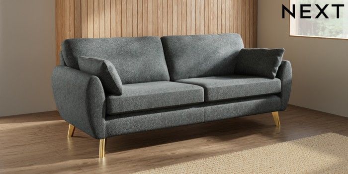 7.3.1 Buy Wilson 3 Seater Sofa Cotswold Chenille Dark Grey Metal Tapered - Gold from the Seasons online shop Click here to use our website with more accessibility support, for example screen readers