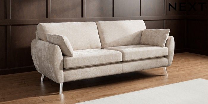 7.3.1 Buy Wilson 3 Seater Sofa Distressed Velour Mid Natural Metal Tapered - Chrome from the Seasons online shop Click here to use our website with more accessibility support, for example screen readers
