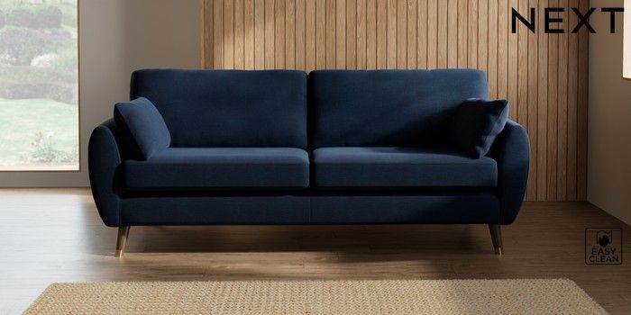 7.3.1 Buy Wilson 3 Seater Sofa Fine Chenille Easy Clean Dark Navy Blue Low Retro Tapered Metal Cap - Mid from the Seasons online shop Click here to use our website with more accessibility support, for example screen readers