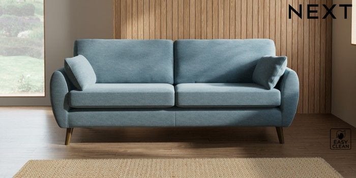 7.3.1 Buy Wilson 3 Seater Sofa Fine Chenille Easy Clean Mid Blue Retro Tapered - Mid from the Seasons online shop Click here to use our website with more accessibility support, for example screen readers