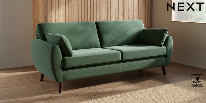 7.3.1 Buy Wilson 3 Seater Sofa Fine Chenille Easy Clean Mid Khaki Green Retro Tapered - Dark Brown from the Seasons online shop Click here to use our website with more accessibility support, for example screen readers