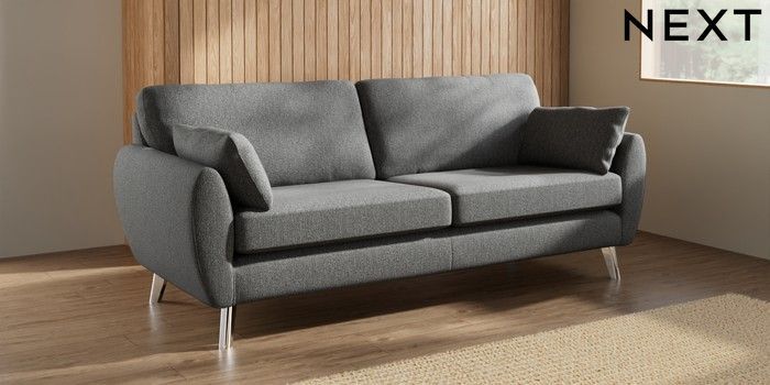 7.3.1 Buy Wilson 3 Seater Sofa Tweedy Chenille Dark Grey Metal Tapered - Chrome from the Seasons online shop Click here to use our website with more accessibility support, for example screen readers
