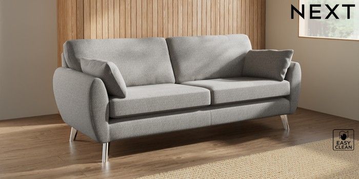 7.3.1 Buy Wilson 3 Seater Sofa Woven Chenille Easy Clean Light Grey Metal Tapered - Chrome from the Seasons online shop Click here to use our website with more accessibility support, for example screen readers