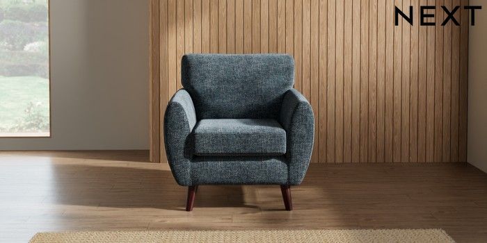 7.3.1 Buy Wilson Armchair Chunky Chenille Dark Navy Blue Retro Tapered - Dark Brown from the Seasons online shop Click here to use our website with more accessibility support, for example screen readers