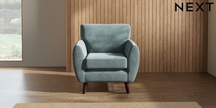 7.3.1 Buy Wilson Armchair Chunky Chenille Light Teal Green Retro Tapered - Dark Brown from the Seasons online shop Click here to use our website with more accessibility support, for example screen readers