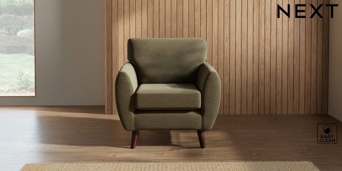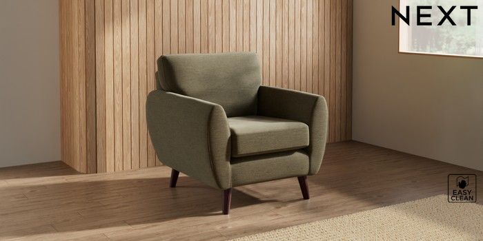 7.3.1 Buy Wilson Armchair Fine Chenille Easy Clean Dark Moss Green Retro Tapered - Dark Brown from the Seasons online shop