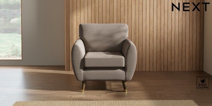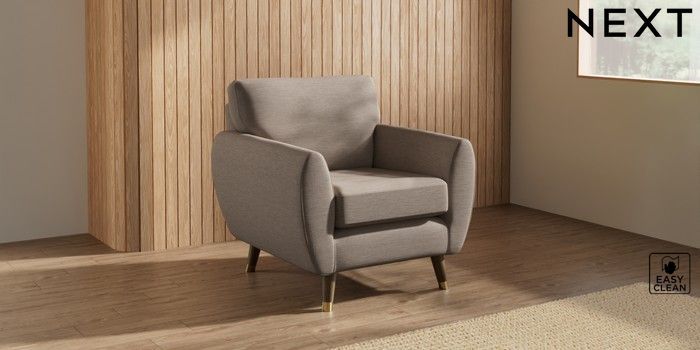 7.3.1 Buy Wilson Armchair Fine Chenille Easy Clean Mid Taupe Brown Low Retro Tapered Metal Cap - Mid from the Seasons online shop