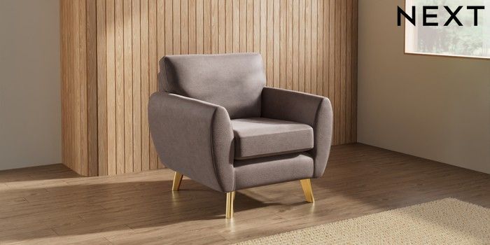 7.3.1 Buy Wilson Armchair Luxe Chenille Mink Brown Metal Tapered - Gold from the Seasons online shop