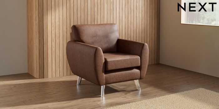 7.3.1 Buy Wilson Armchair Monza Faux Leather Easy Clean Chestnut Brown Metal Tapered - Chrome from the Seasons online shop
