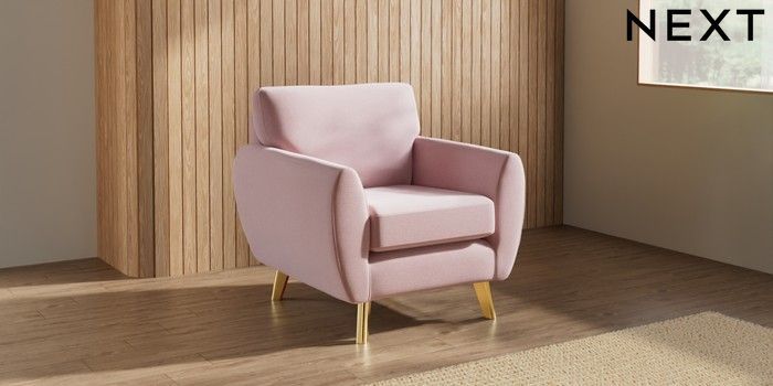 7.3.1 Buy Wilson Armchair Natural Mix Light Rose Pink Metal Tapered - Gold from the Seasons online shop