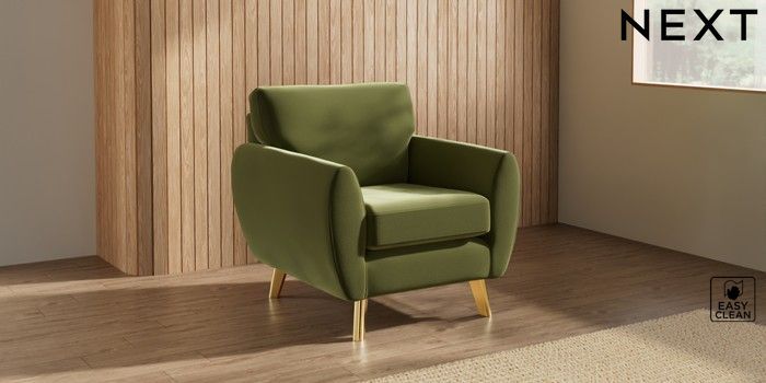 7.3.1 Buy Wilson Armchair Plush Velvet Easy Clean Mid Olive Green Metal Tapered - Gold from the Seasons online shop