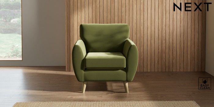 7.3.1 Buy Wilson Armchair Plush Velvet Easy Clean Mid Olive Green Retro Tapered - Light from the Seasons online shop