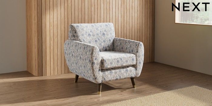 7.3.1 Buy Wilson Armchair Relaxed Linen Look Print Woodblock Floral Blue Low Retro Tapered Metal Cap - Mid from the Seasons online shop