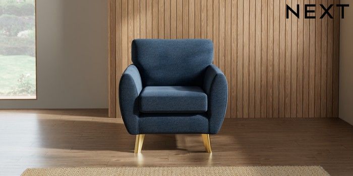 7.3.1 Buy Wilson Armchair Ripple Chenille Dark Blue Metal Tapered - Gold from the Seasons online shop