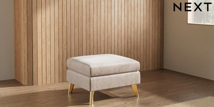7.3.1 Buy Wilson Footstool Cotswold Chenille Light Natural Metal Tapered - Gold from the Seasons online shop Click here to use our website with more accessibility support, for example screen readers