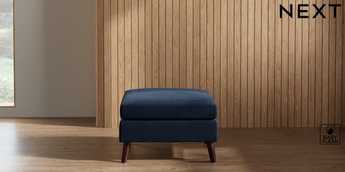 7.3.1 Buy Wilson Footstool Fine Chenille Easy Clean Dark Navy Blue Retro Tapered - Dark Brown from the Seasons online shop Click here to use our website with more accessibility support, for example screen readers