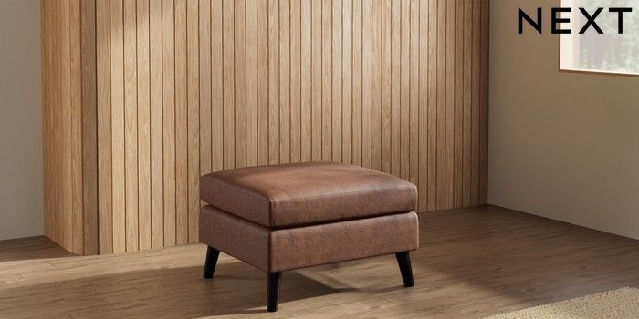 7.3.1 Buy Wilson Footstool Monza Faux Leather Easy Clean Chestnut Brown Retro Tapered - Dark from the Seasons online shop