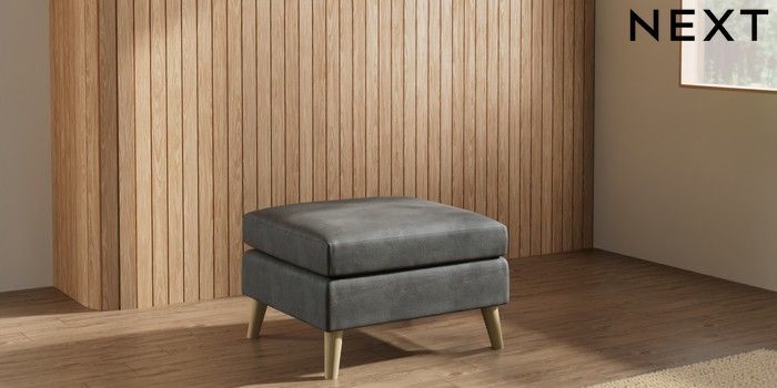 7.3.1 Buy Wilson Footstool Monza Faux Leather Easy Clean Dark Grey Retro Tapered - Light from the Seasons online shop Click here to use our website with more accessibility support, for example screen readers