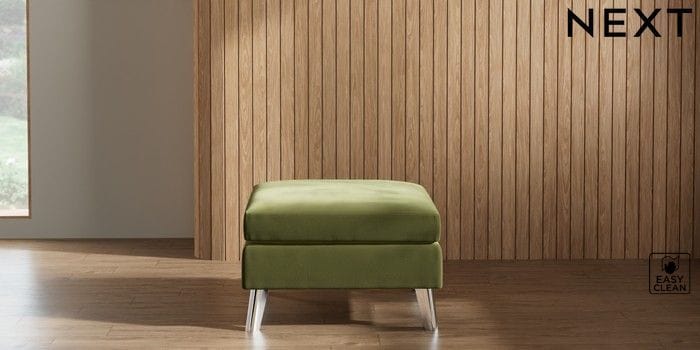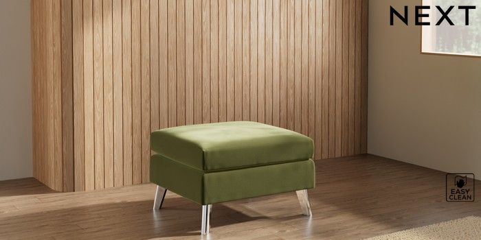7.3.1 Buy Wilson Footstool Plush Velvet Easy Clean Mid Olive Green Metal Tapered - Chrome from the Seasons online shop