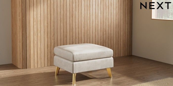 7.3.1 Buy Wilson Footstool Plush Chenille Oyster Metal Tapered - Gold from the Seasons online shop Click here to use our website with more accessibility support, for example screen readers