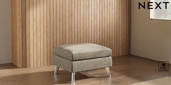 7.3.1 Buy Wilson Footstool Woven Chenille Easy Clean Mid Natural Metal Tapered - Chrome from the Seasons online shop Click here to use our website with more accessibility support, for example screen readers