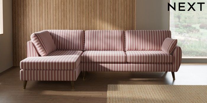 7.3.1 Buy Wilson Large Corner Chaise - Left Hand Bold Chenille Stripe Dark Pink Low Retro Tapered Metal Cap - Mid from the Seasons online shop Click here to use our website with more accessibility support, for example screen readers