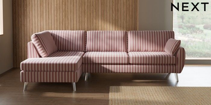 7.3.1 Buy Wilson Large Corner Chaise - Left Hand Bold Chenille Stripe Dark Pink Metal Tapered - Chrome from the Seasons online shop Click here to use our website with more accessibility support, for example screen readers
