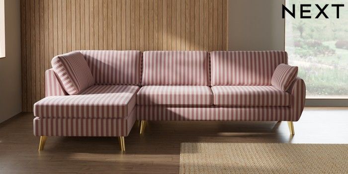 7.3.1 Buy Wilson Large Corner Chaise - Left Hand Bold Chenille Stripe Dark Pink Metal Tapered - Gold from the Seasons online shop Click here to use our website with more accessibility support, for example screen readers