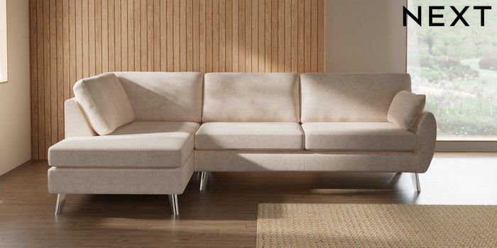 7.3.1 Buy Wilson Large Corner Chaise - Left Hand Boucle Chenille Oyster Metal Tapered - Chrome from the Seasons online shop Click here to use our website with more accessibility support, for example screen readers