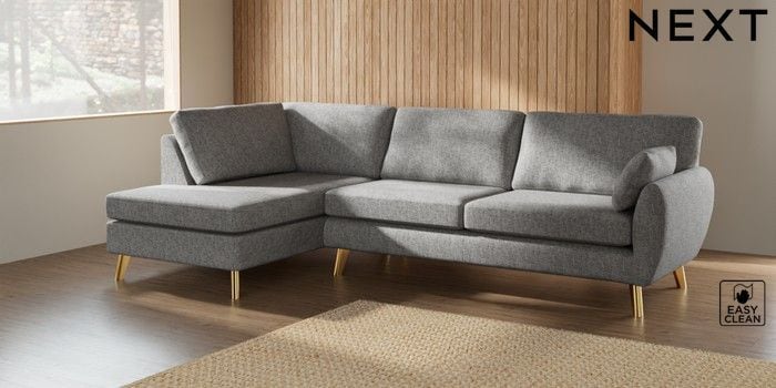7.3.1 Buy Wilson Large Corner Chaise - Left Hand Chunky Boucle Easy Clean Light Grey Metal Tapered - Gold from the Seasons online shop Click here to use our website with more accessibility support, for example screen readers