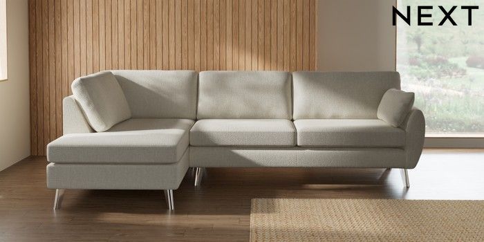 7.3.1 Buy Wilson Large Corner Chaise - Left Hand Chunky Texture Oyster Metal Tapered - Chrome from the Seasons online shop Click here to use our website with more accessibility support, for example screen readers