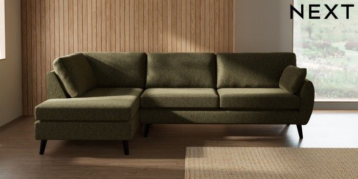 7.3.1 Buy Wilson Large Corner Chaise - Left Hand Cotswold Chenille Dark Green Retro Tapered - Dark from the Seasons online shop Click here to use our website with more accessibility support, for example screen readers