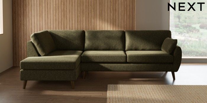7.3.1 Buy Wilson Large Corner Chaise - Left Hand Cotswold Chenille Dark Green Retro Tapered - Mid from the Seasons online shop Click here to use our website with more accessibility support, for example screen readers