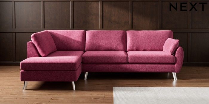 7.3.1 Buy Wilson Large Corner Chaise - Left Hand Cotswold Chenille Dark Raspberry Pink Metal Tapered - Chrome from the Seasons online shop Click here to use our website with more accessibility support, for example screen readers