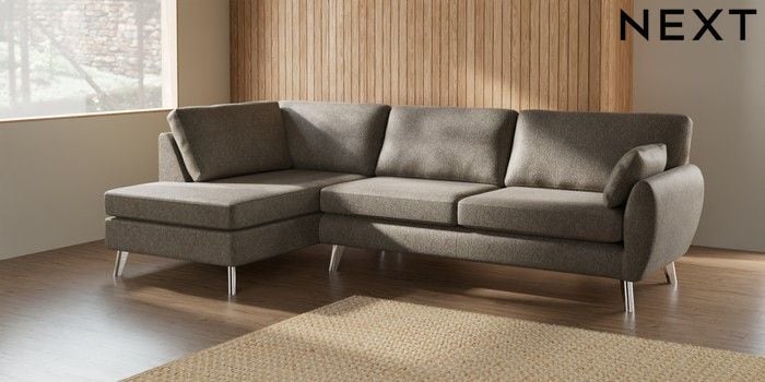 7.3.1 Buy Wilson Large Corner Chaise - Left Hand Cotswold Chenille Mid Mink Brown Metal Tapered - Chrome from the Seasons online shop Click here to use our website with more accessibility support, for example screen readers