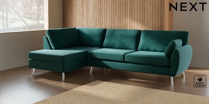 7.3.1 Buy Wilson Large Corner Chaise - Left Hand Fine Chenille Easy Clean Dark Juniper Green Metal Tapered - Chrome from the Seasons online shop Click here to use our website with more accessibility support, for example screen readers