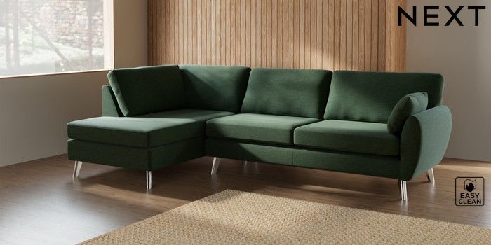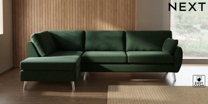 7.3.1 Buy Wilson Large Corner Chaise - Left Hand Fine Chenille Easy Clean Mid Khaki Green Metal Tapered - Chrome from the Seasons online shop Click here to use our website with more accessibility support, for example screen readers