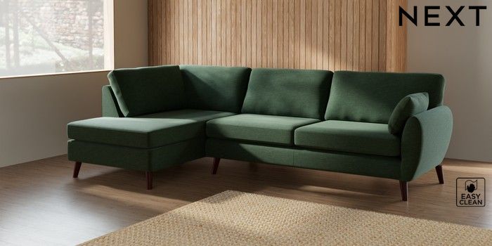7.3.1 Buy Wilson Large Corner Chaise - Left Hand Fine Chenille Easy Clean Mid Khaki Green Retro Tapered - Dark Brown from the Seasons online shop Click here to use our website with more accessibility support, for example screen readers